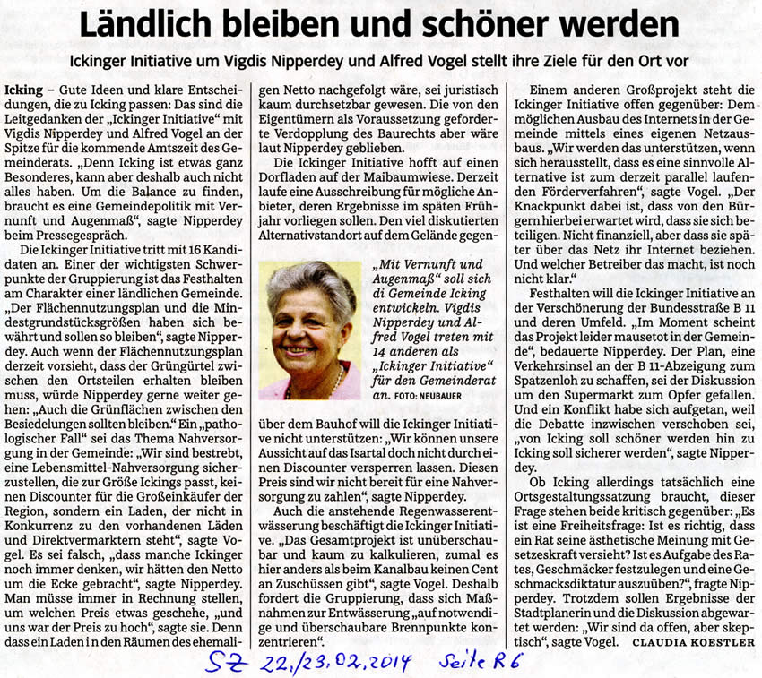 - 22./23.02.14, "Ländlich bleiben und schöner werden, Süddeutsche Zeitung