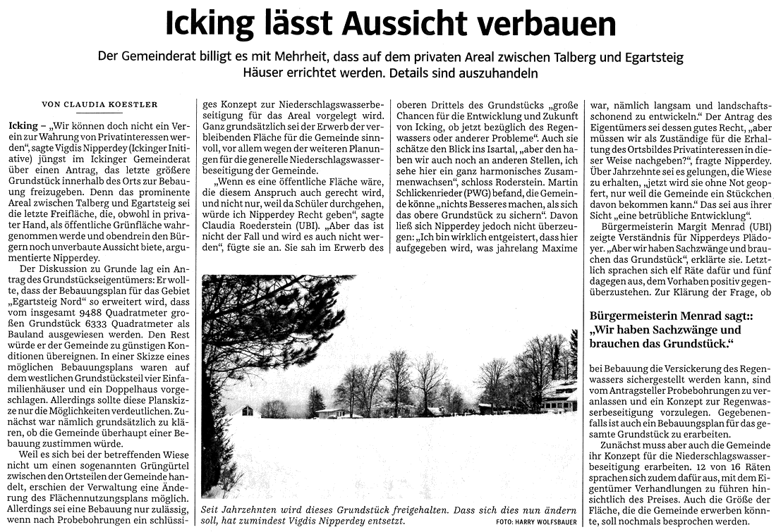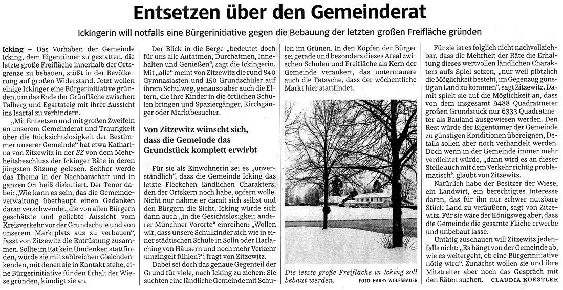 - 03.02.15, "Icking lässt Aussicht verbauen, Süddeutsche Zeitung