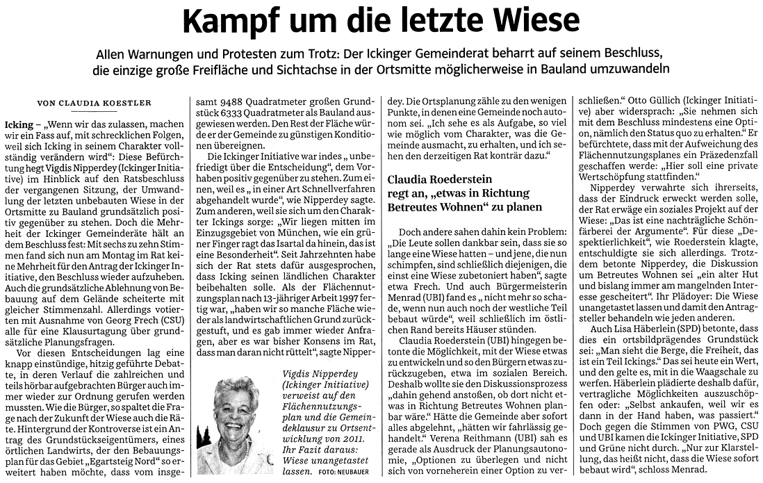 - 11.03.15, "Kampf um die letzte Wiese", Süddeutsche Zeitung