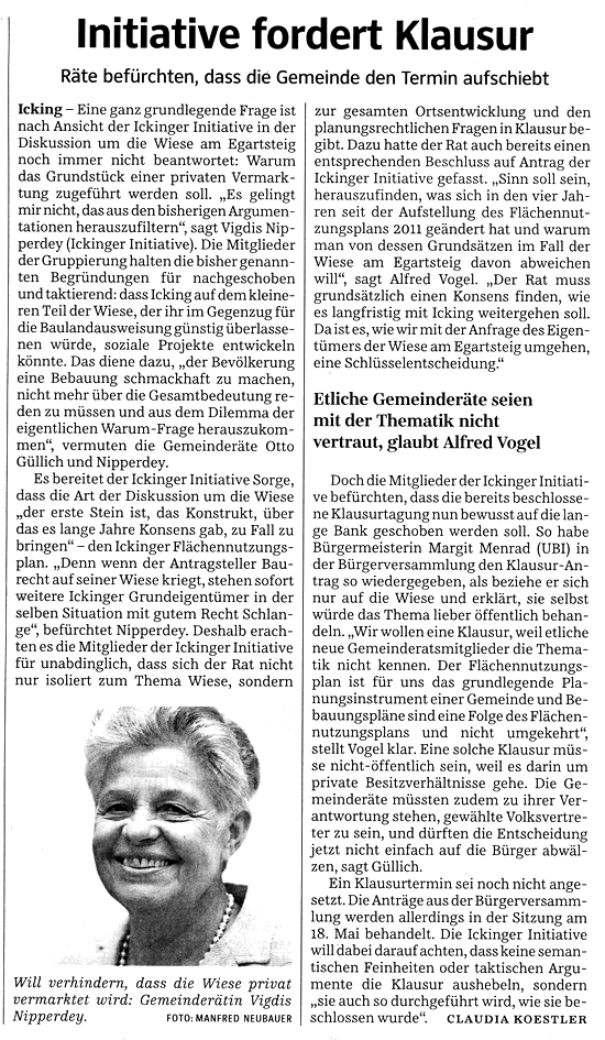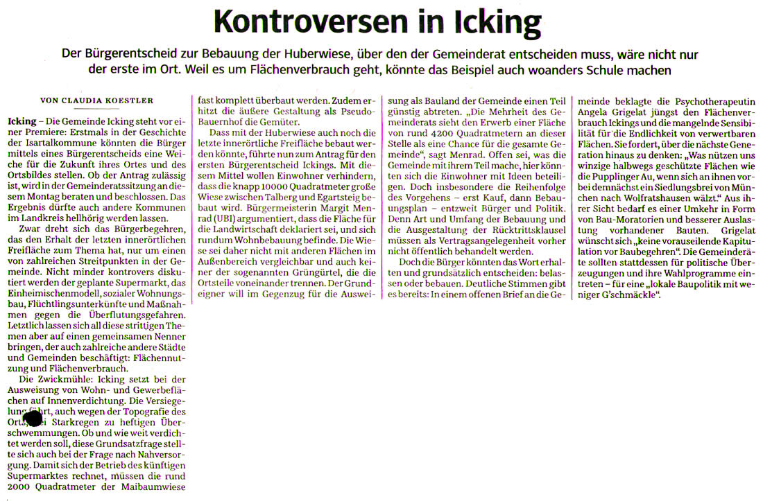 - 20.04.16, "Kontroversen in Icking", Süddeutsche Zeitung
