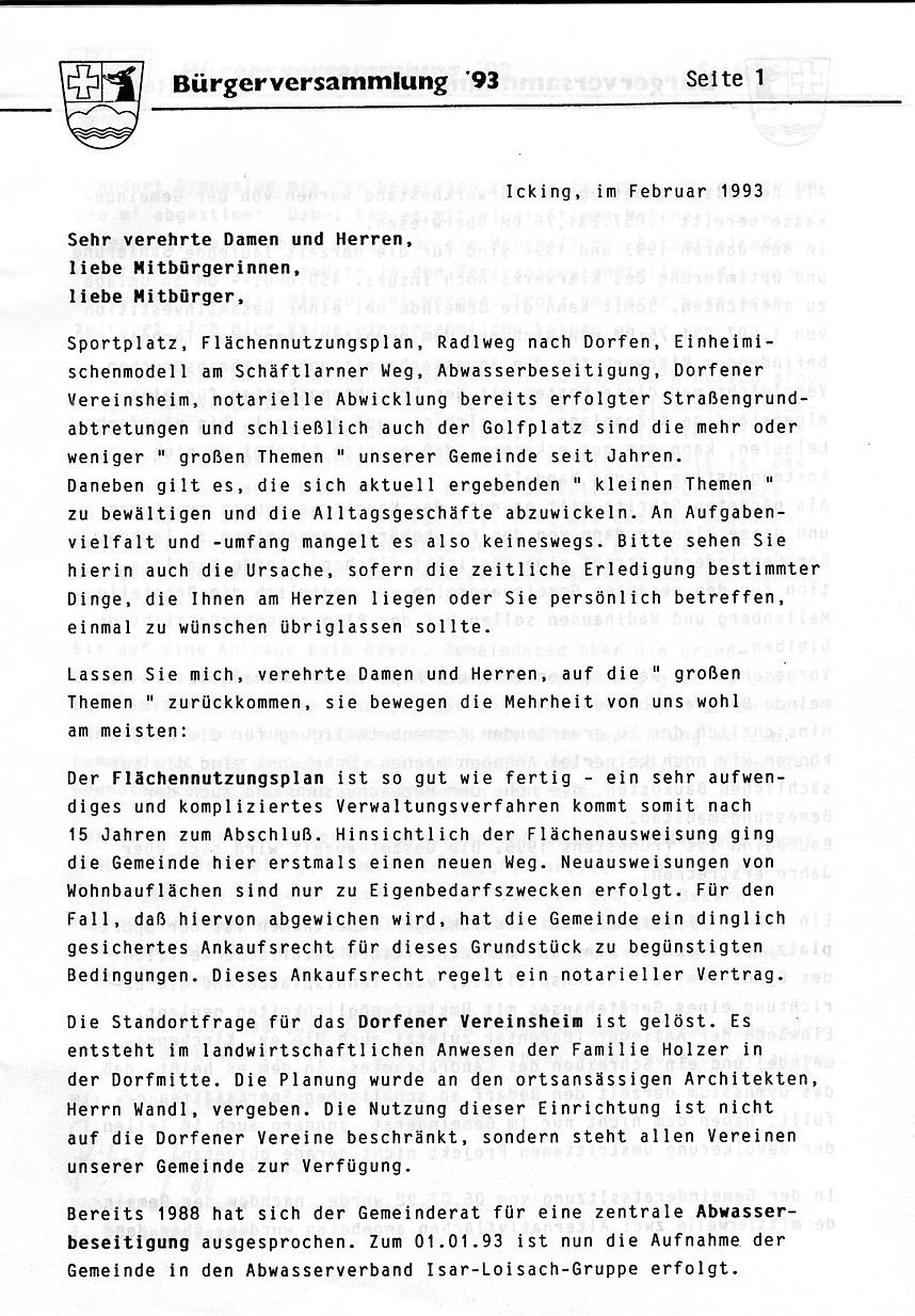 - Februar 1993, “Auszug aus dem Bürgerheft; Flächennutzungsplan“